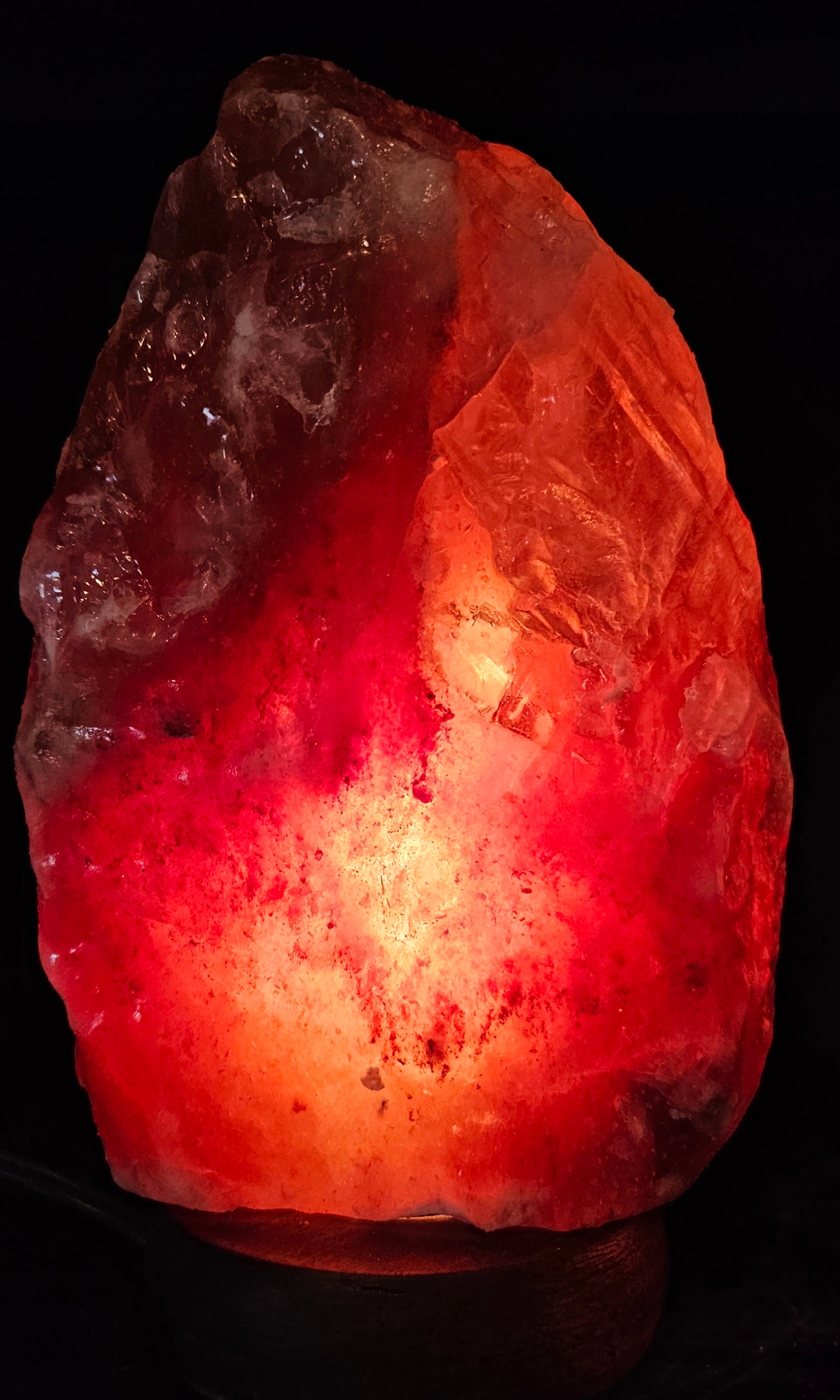 Our most popular for all rooms is this sunset-colored salt lamp. Glows like the most breathtaking sunset. Most areas of this lamp have a clear crystal salt layer on top covering darker layers underneath, creating a magnificent crystal shimmer effect throughout most of this lamp! Some crystalline-like windows. Absolutely STUNNING!