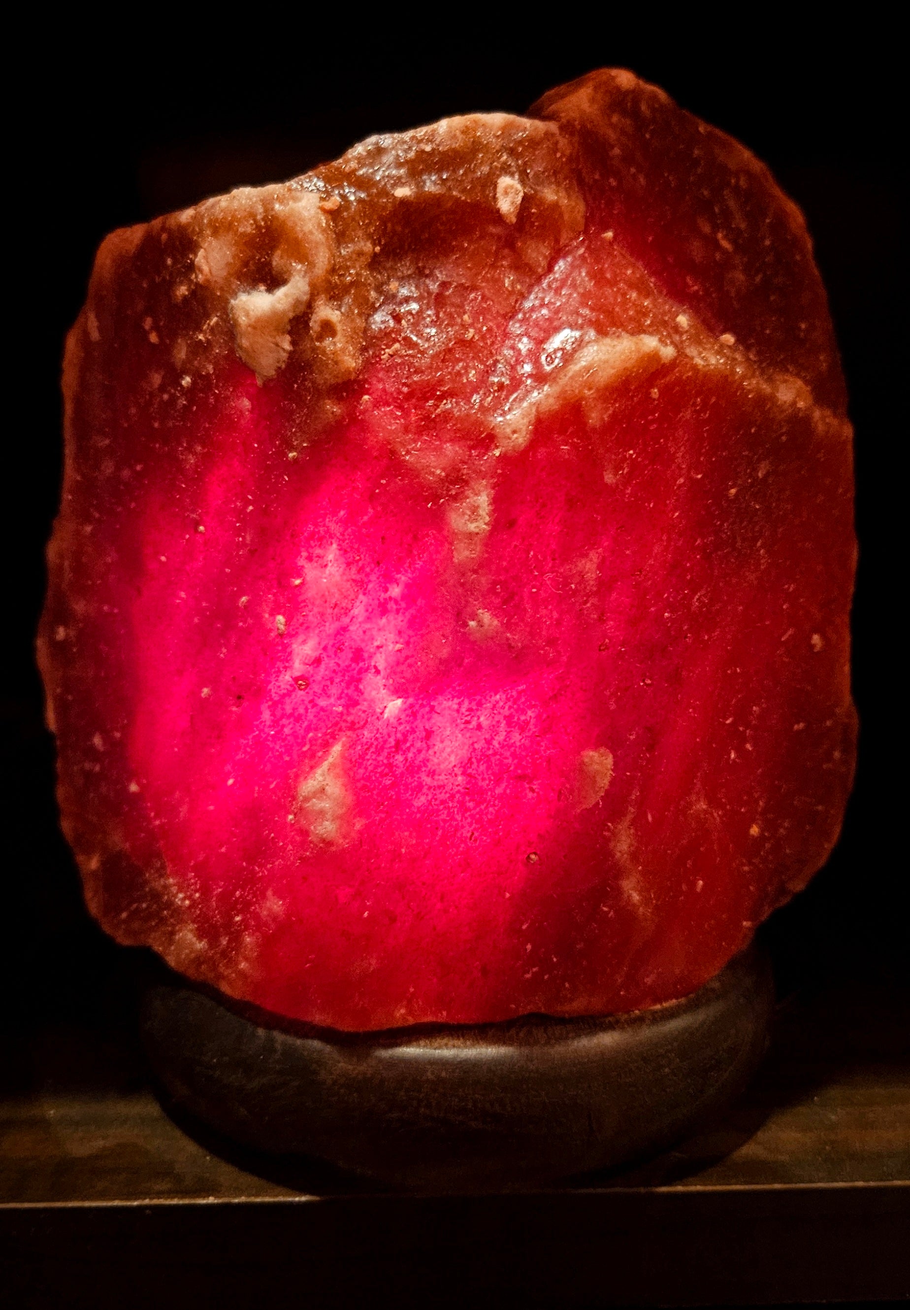 Our most popular for all rooms is this deeper sunset-colored salt lamp. Glows like the most breathtaking sunset! One side of this lamp is virtually blacked out, a second side has a little heartbeat of sunset red shining through and the other 2 sides are soft sunset red, perfect for those who like to sleep with just a little soft glow in the room. Also great for every room in the home, and it's petite so it will fit almost anywhere!